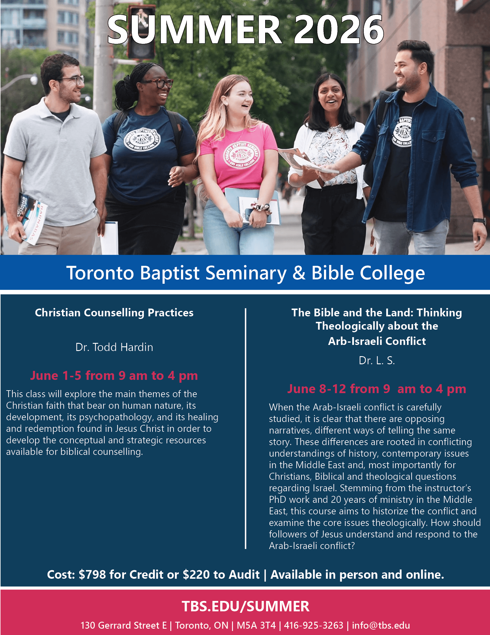 When the Arab-Israeli conflict is carefully studied, it is clear that there are opposing narratives, different ways of telling the same story. These differences are rooted in conflicting understandings of history, contemporary issues in the Middle East and, most importantly for Christians, Biblical and theological questions regarding Israel. Stemming from the instructor’s PhD work and 20 years of ministry in the Middle East, this course aims to historize the conflict and examine the core issues theologically. How should followers of Jesus understand and respond to the Arab-Israeli conflict?